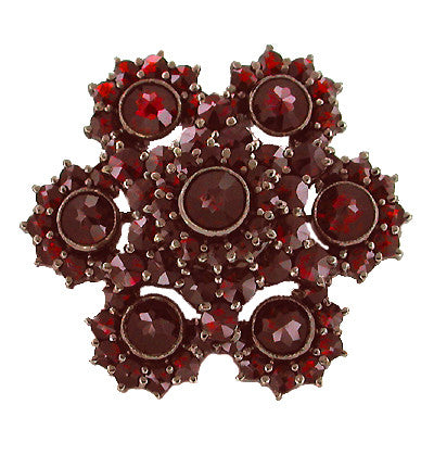 Victorian Bohemian Garnet Floral Brooch with Antique Finish in Sterling Silver