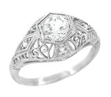 Antique Edwardian Diamond Set Filigree Brooch in 10 Karat White Gold