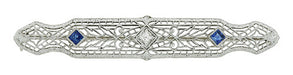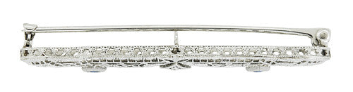 Antique Sapphire and Diamond Filigree Art Deco Bar Brooch in 14 Karat White Gold and Platinum