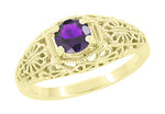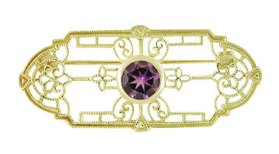 Edwardian Filigree Amethyst Brooch in 14 Karat Yellow Gold