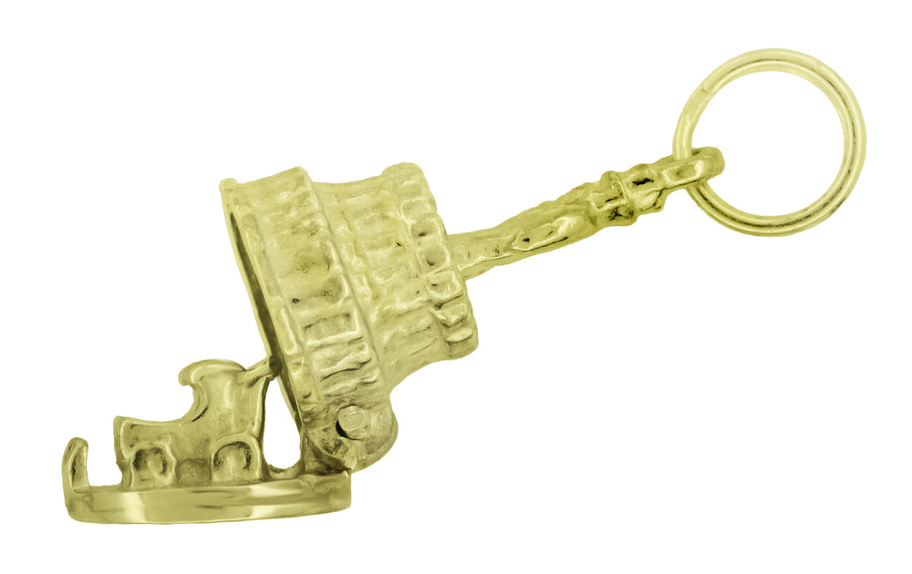 Made to order in your choice of 14K yellow gold or 14K white gold, it measures 3/4 inch high by 3/8 inch wide, with a split ring bail for secure easy attachment to a charm bracelet, or for wear on a chain.
