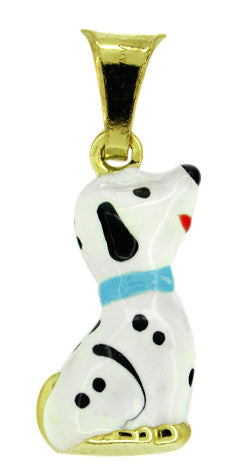 Dalmatian owners and dog lovers will find this adorable estate dalmatian charm irresistible! Fashioned in 14K yellow gold, this pendant is made in Italy and expertly hand enameled. Measuring 1 inch high including the bail, this charm will be a treasured addition to your jewelry collection and would be perfect on a favorite necklace or charm bracelet.