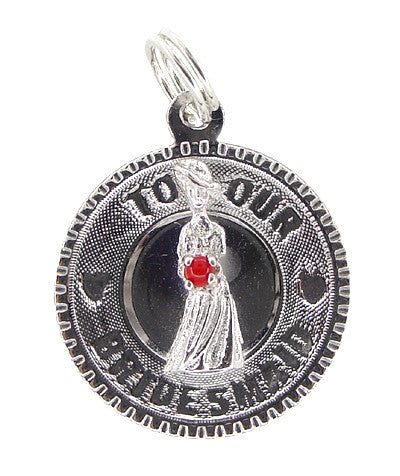 It measures 3/4 inch wide and features a sterling silver split ring bail that makes this charm perfect to wear on a favorite neckchain and easy to securely attach this heirloom bridesmaid charm to a charm bracelet.