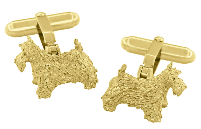 Crafted to order in your choice of 14K Yellow Gold, White Gold, or Rose Gold, it measures 3/4 inch long and 1/8 inch wide. The finely detailed cute scottish terrier dog features a three dimensional solid gold design - making it good looking from all angles!