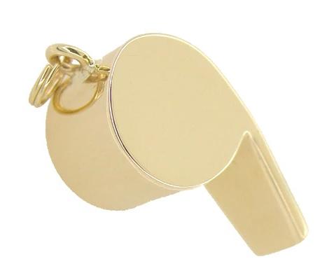 Small Working Whistle Charm Pendant in 14 Karat Yellow Gold