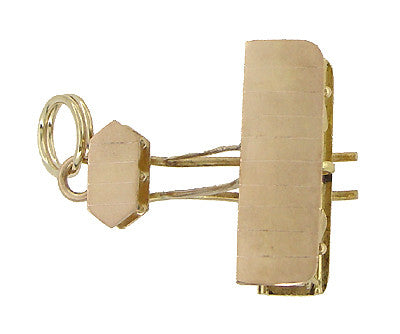 Vintage, circa 1940's. Measures 1/16 inch long by 11/16 inch wide by 5/16 inch high. Features a 14K yellow gold split ring bail that makes this charm perfect to wear on a favorite neckchain or easily and securely attaches this charm to a charm bracelet.