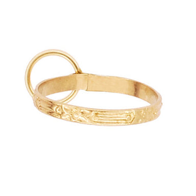 Each cute little ring has an artistic geometric pattern on the band, for a beautiful finishing touch. This attractive and unique bridal charm can be worn on a neckchain, or securely attached to a charm bracelet with its 14K yellow gold split ring bail.