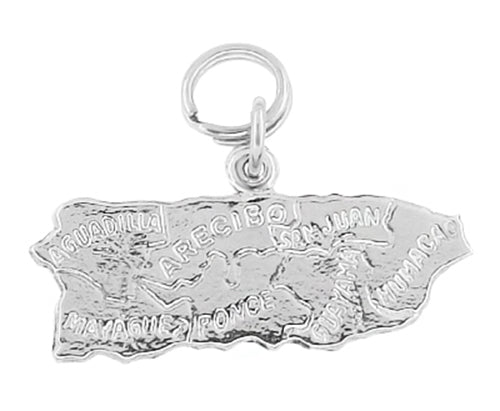 White Gold Puerto Rico Map Charm - 14K or 10K Solid Gold