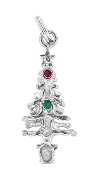 Gem Set Christmas Tree Charm in 14 Karat Gold - With Natural Ruby, Emerald, & White Sapphire Stones
