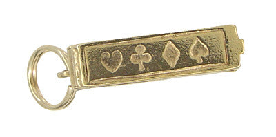 Measuring 11/16 inch long by 3/16 inch wide by 3/8 high, and with a large 14K yellow gold split ring bail, this card player's charm is a sure conversation starter for wear on your favorite neck chain or it can be easily and securely attached to your favorite charm bracelet.