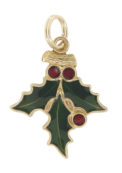 Celebrate the Christmas holidays anytime with this exquisite vintage 14K yellow gold charm, symbolic of the warmth of home and the love those within have for one another. Featuring beautiful green and red enameling, this one-of-a-kind charm is sure to bring a splash of color to your holiday wardrobe or special charm bracelet. Circa 1950's, this pretty estate pendant measures 15/16 inch high by 3/4 inch wide and features a 14K yellow gold split ring bail that makes this charm perfect to wear on a favorite neckchain or easily and securely attaches this charm to a charm bracelet.