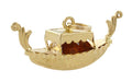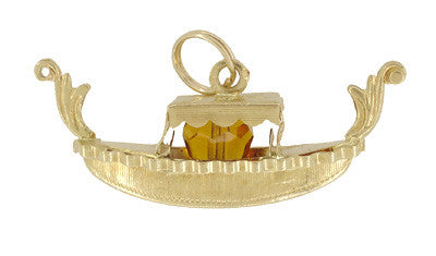 This beautiful vintage Venetian gondola charm in 18K yellow gold dates from the 1950's. A true 3 dimensional miniature design, this pre-loved large estate gondola pendant is in excellent condition with fine engraved details and features an amber gem under the canopy. It measures 1 5/8 inch long by 5/8 inch high by 7/16 inch wide.