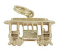 Crafted to order in solid 14K yellow gold, this trolley car pendant measures 5/8 inch wide by 1/2 inch high, with a 14K yellow gold split ring bail for easy attachment to a charm bracelet or wear on a favorite neckchain.