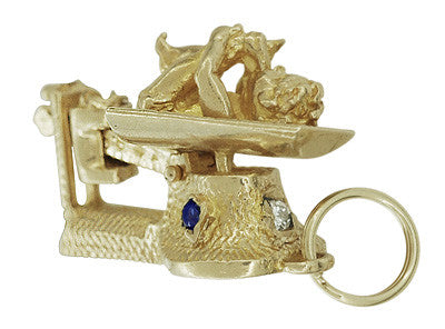 Vintage Baby on a Movable Scale Charm Pendant in 14 Karat Yellow Gold with Ruby, Sapphire, and Diamond