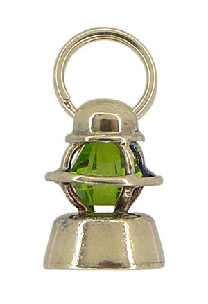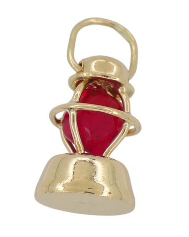 Vintage Green Glass Railroad Lantern Charm in 10 Karat Yellow Gold