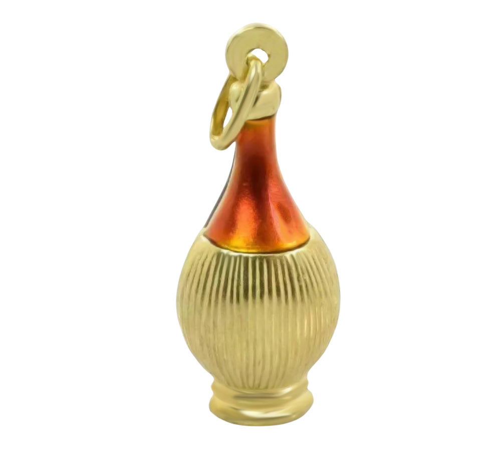 Vintage Chianti Wine Bottle Charm Pendant in 18 Karat Yellow Gold