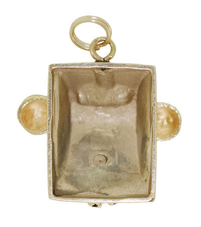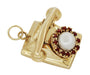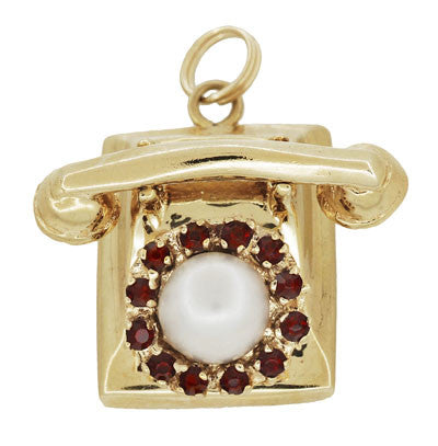 Moveable Vintage Telephone Pendant Charm in 14 Karat Yellow Gold With Pearl