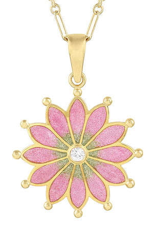 Art Nouveau Design Pendant with Old Mine Cut Diamond in 14 Karat Yellow Gold