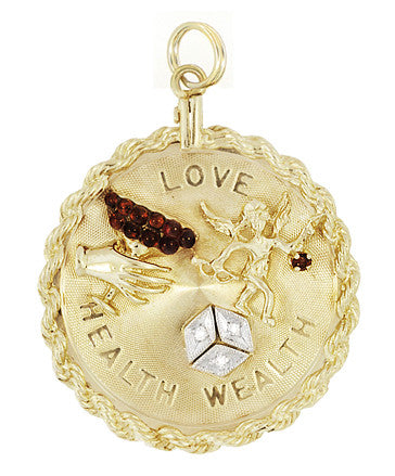 Vintage Love - Health - Wealth Medallion Pendant in 14 Karat Yellow Gold