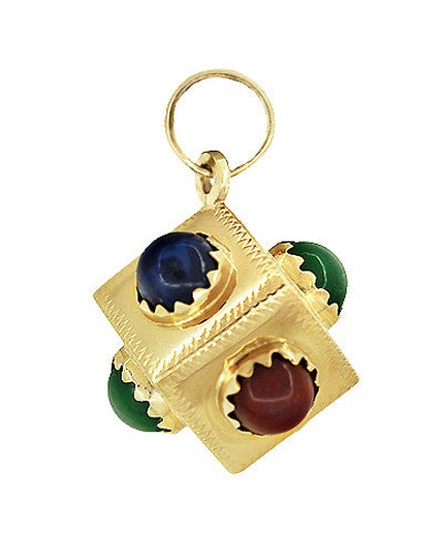 This beautiful vintage gold gemstone cube pendant measures approximately 1 inch high including the bail and 3/4 inch wide and is an eye-catching center of attention for wear on your special charm bracelet or favorite necklace.