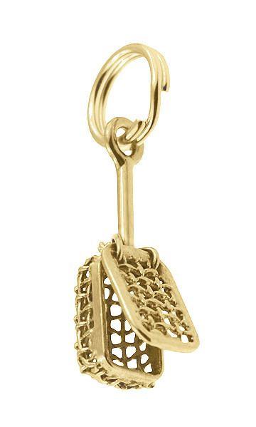 This movable fryer charm features a 14K yellow gold split ring bail for ease of attachment to a charm bracelet