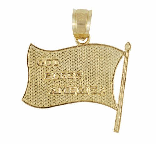 God Bless America Engraved and Enameled American Flag Charm in 14 Karat Gold