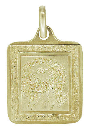 Rectangular Engraved Jesus Medallion Pendant in 14K Gold