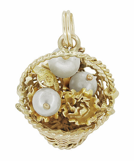 This one of a kind gold pearl basket charm can be worn as a pendant or large charm and features a 14K yellow gold split ring bail - perfect for wear on a favorite neck chain or to easily and securely attach it to a charm bracelet.