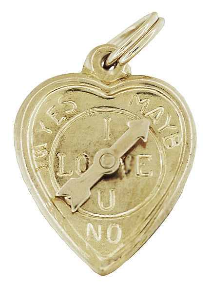 Heart Love Meter Charm with Movable YES - MAYBE - NO Spinning Arrow in 10K Yellow Gold