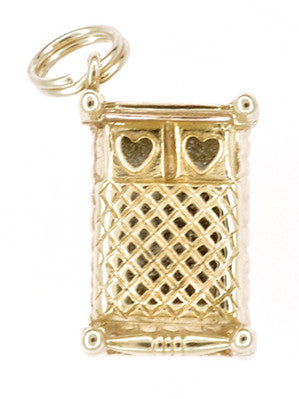 Vintage 4 Poster Bed Charm Pendant in 14K Gold with Heart Pillows