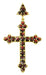 Celebrate your precious faith with this bold and radiant Victorian bohemian garnet cross pendant! Meticulously crafted in luminous 18 karat yellow gold vermeil over sterling silver, the pendant features securely prong set fiery red round rose cut natural bohemian garnets ( January Birthstone ). Each of the four corners of the cross pendant are punctuated by a cluster of brilliant bohemian garnets for elegant effect, and the exquisite bohemian garnet fleur de lis that conceals the bail provides a striking finishing touch. Measuring 2 1/16 inch high and 1 1/8 inch wide with a medium sized bail, this gorgeous cross pendant would also make a wonderful gift.