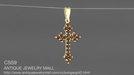 Victorian Bohemian Red Garnet Gothic Cross Pendant in Sterling Silver with Yellow Gold Vermeil