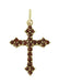 This radiant Victorian bohemian garnet cross pendant is artisan made in 18 karat gold vermeil over sterling silver and set with natural red rose cut garnets. Measures 1" high and 5/8" wide.