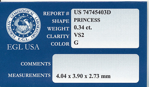 Loose Natural 0.34 Carat Princess Cut Diamond G Color VS2 Clarity | EGL USA Certificate | Very Good Polish