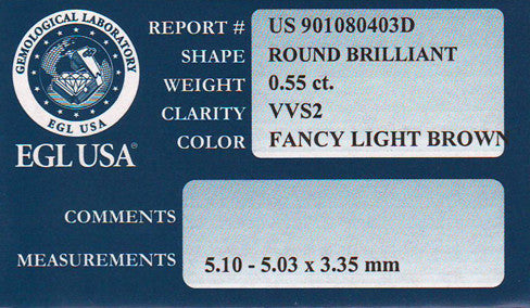 0.55 Carat Pale Apricot Color Natural Loose Fancy Light Brown Diamond | Round Brilliant VVS2 Clarity