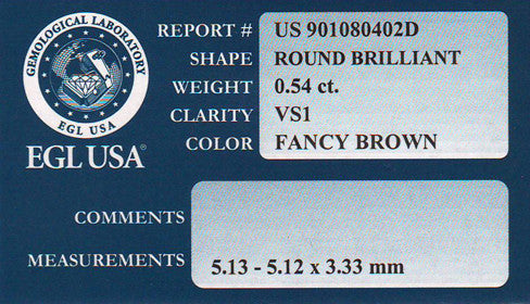 0.54 Carat Natural Caramel Color Loose Fancy Brown Diamond | Round Brilliant VS1 Clarity