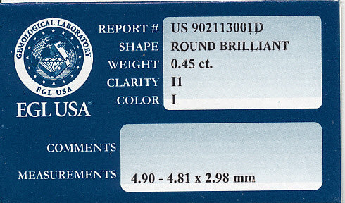 0.45 Carat I Color I1 Clarity Loose Round Affordable Natural Diamond | Eye Clean | EGL USA Certified