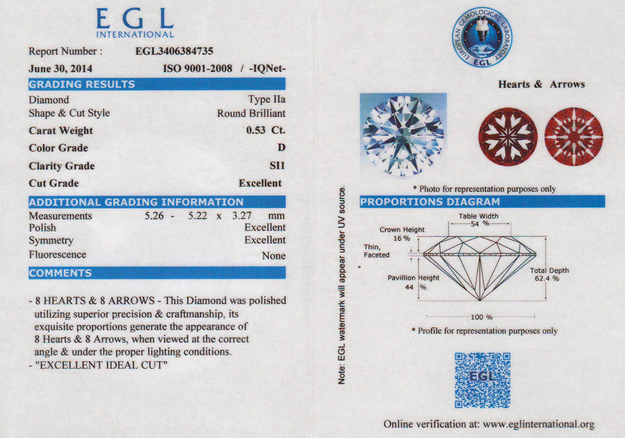 - Excellent Symmetry with very desirable "Hearts and Arrows"