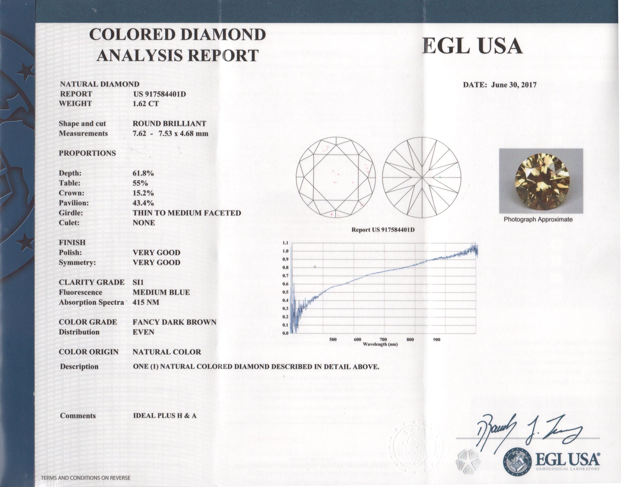 1.62 Carat Loose Natural Fancy Mocha Brown Color Diamond - Round Brilliant Ideal Cut - SI1 Clarity