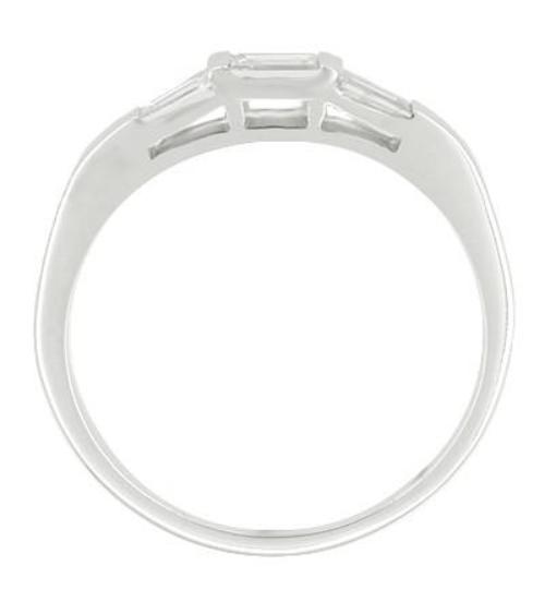 1950's Style Baguette "Three Stone" Diamond Wedding Band in White Gold - 18K or 14K