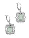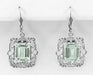 Art Deco Filigree Prasiolite Green Amethyst Drop Earrings in Sterling Silver