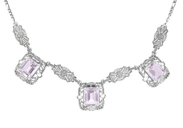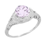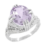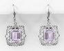 Art Deco Filigree Rose de France Amethyst Drop Earrings in Sterling Silver