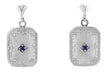 Art Deco Filigree Blue Sapphire and Diamond Crystal Earrings in Sterling Silver