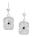 Art Deco Filigree Sapphire, Diamond and Sun Ray Crystal Dangling Earrings in Sterling Silver