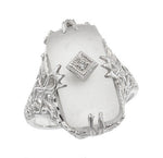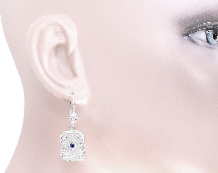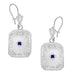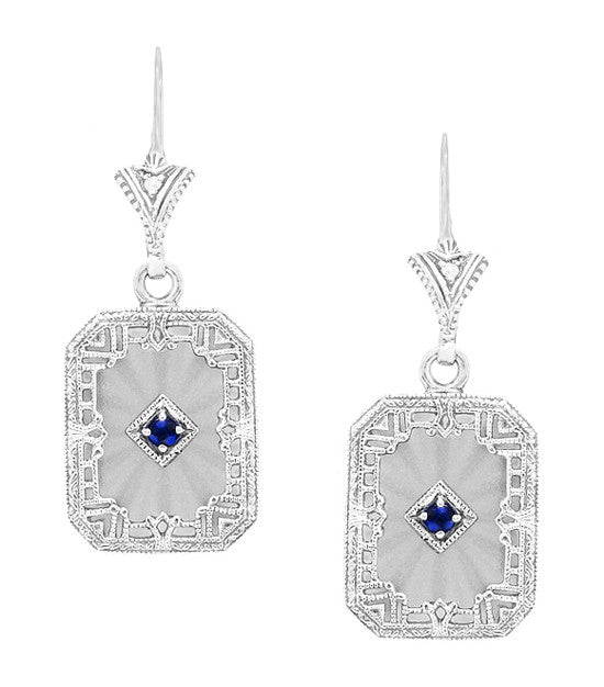 Art Deco Filigree Sapphire and Diamond Set Crystal Earrings in 14 Karat White Gold