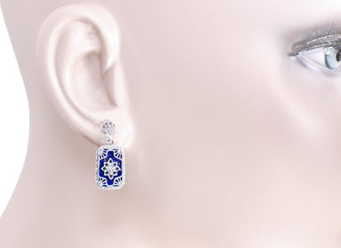 With secure lock back earwires, each earring measures 1 1/2 inches long from the top of the earwire to the bottom of the earring, by 1/2 inch wide. These beautiful vintage style Art Deco 14K white gold filigree earrings would be the perfect way to surprise that special someone or a wonderful way to treat yourself!