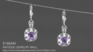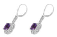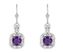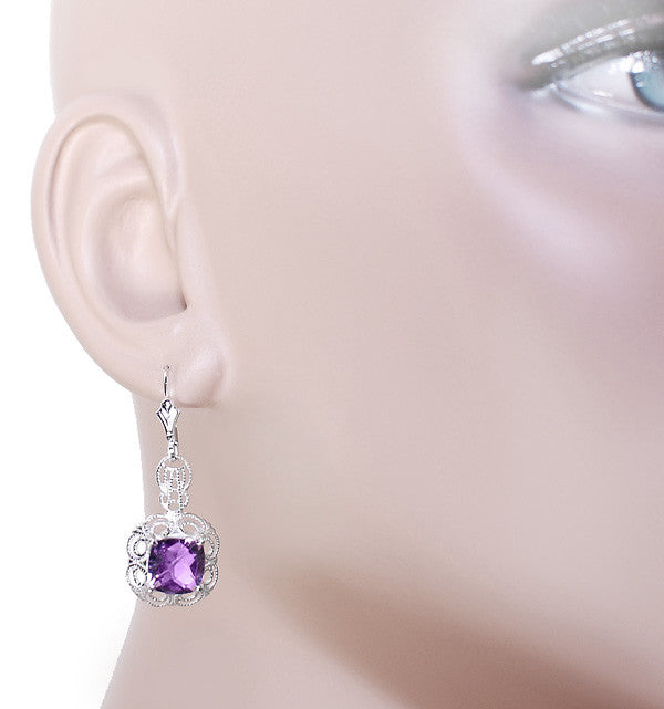 Art Deco Filigree Cushion Cut Amethyst Drop Earrings in Sterling Silver