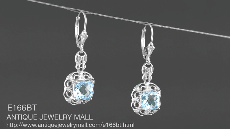 Art Deco Filigree Cushion Cut Sky Blue Topaz Drop Earrings in Sterling Silver