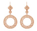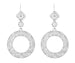 Crafted with three tiers of detailed filigree floral scalloped design openwork, these filigree drop earrings feature a large circle motif at the bottom of each earring, symbolic of eternal love and unity. Plenty of eye-catching movement, a finished open gallery around the sides of the earrings, and fine millgrain edging and beadwork for the perfect finishing touch create a substantial look which is sure to be noticed.