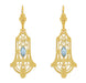 Art Deco Geometric Sky Blue Topaz Dangling Filigree Earrings in Sterling Silver with Yellow Gold Vermeil